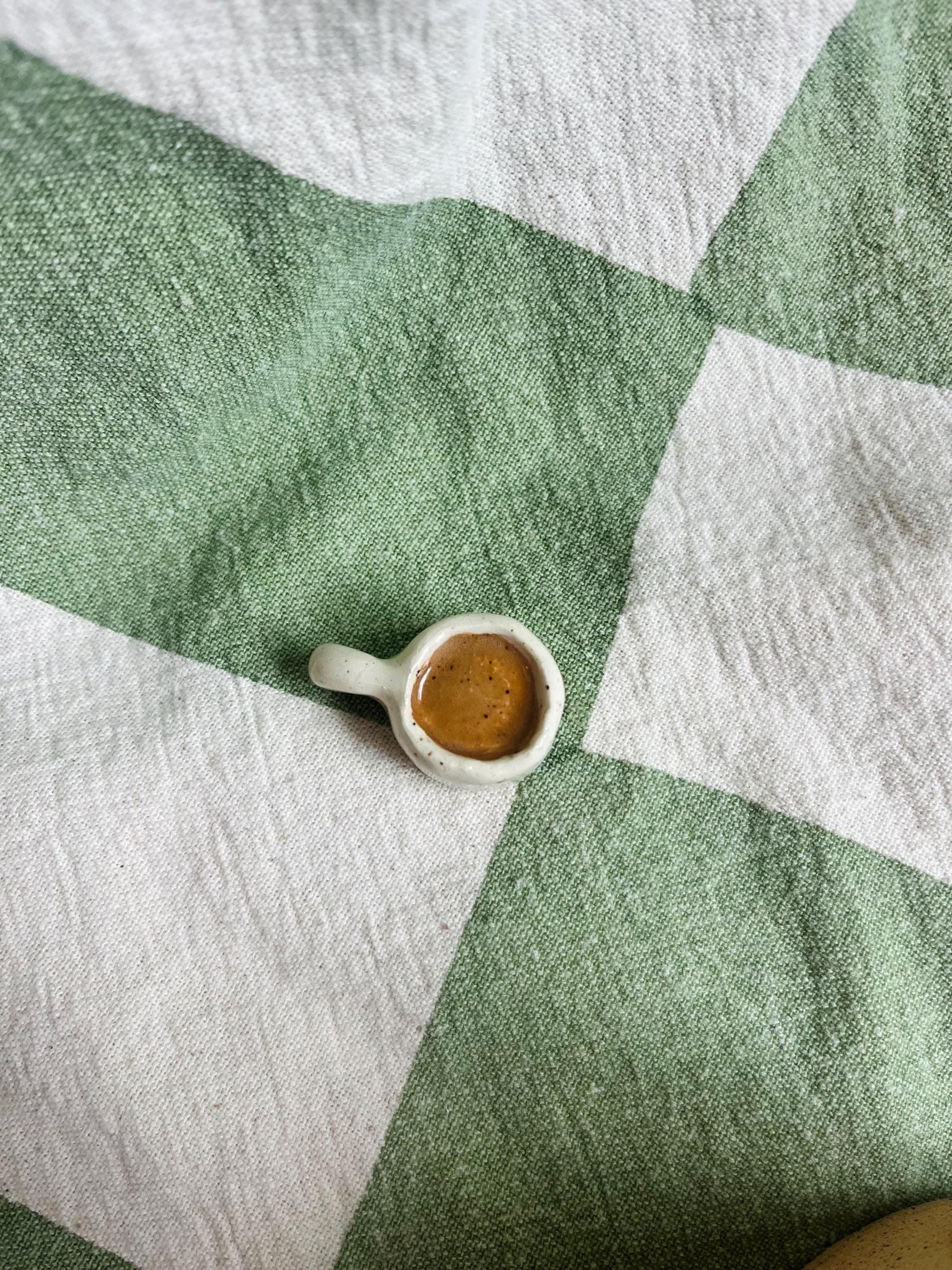 Sometimes, the best things come in small, charming packages. This handmade ceramic trinket of a coffee mug with a tiny swirl of coffee is the perfect little piece to brighten any day. While it may not have a functional purpose, it serves an important role—bringing joy to anyone who sees it.